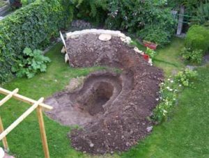 Pour commencer, il est nécessaire de creuser un puit. Veillez à respecter les contours que vous avez posé. Une fois le trou bien profond, veillez à ce que celui-ci soit bien lisse pour placer facilement la bâche. Une fois la bâche installée, vous pouvez commencer par remplir votre bassin avec de l’eau. N’oubliez pas de mettre des cailloux sur les rebords de la bâche pour éviter que celle-ci ne lâche au contact de l’eau. Une fois que vous aurez rempli votre bassin, vous pourrez découper la bâche qui dépasse. Vous pourrez ensuite planter des plantes autour de votre bassin et pourquoi pas, remplir votre bassin de plante aquatique.